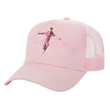 Lionel Messi inter miami jersey, Καπέλο Ενηλίκων Structured Trucker, με Δίχτυ, ΡΟΖ (100% ΒΑΜΒΑΚΕΡΟ, ΕΝΗΛΙΚΩΝ, UNISEX, ONE SIZE)
