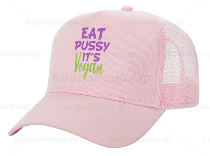 EAT pussy it's vegan, Καπέλο Ενηλίκων Structured Trucker, με Δίχτυ, ΡΟΖ (100% ΒΑΜΒΑΚΕΡΟ, ΕΝΗΛΙΚΩΝ, UNISEX, ONE SIZE)
