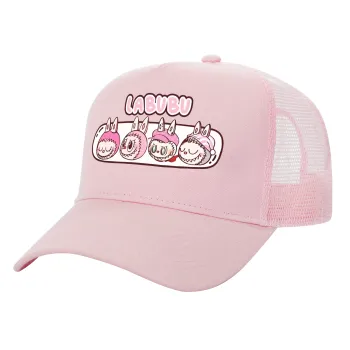 Labubu pink, Καπέλο Ενηλίκων Structured Trucker, με Δίχτυ, ΡΟΖ (100% ΒΑΜΒΑΚΕΡΟ, ΕΝΗΛΙΚΩΝ, UNISEX, ONE SIZE)
