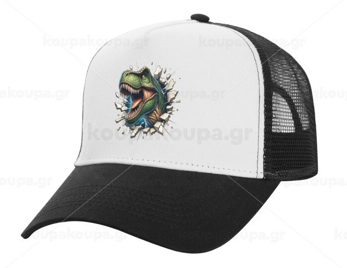 Dinosaur break wall, Καπέλο Ενηλίκων Structured Trucker, με Δίχτυ, ΛΕΥΚΟ/ΜΑΥΡΟ (100% ΒΑΜΒΑΚΕΡΟ, ΕΝΗΛΙΚΩΝ, UNISEX, ONE SIZE)