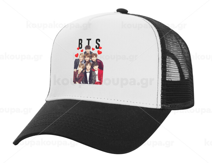 BTS hearts, Καπέλο Ενηλίκων Structured Trucker, με Δίχτυ, ΛΕΥΚΟ/ΜΑΥΡΟ (100% ΒΑΜΒΑΚΕΡΟ, ΕΝΗΛΙΚΩΝ, UNISEX, ONE SIZE)