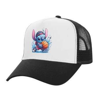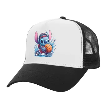Stitch Basketball, Καπέλο Ενηλίκων Structured Trucker, με Δίχτυ, ΛΕΥΚΟ/ΜΑΥΡΟ (100% ΒΑΜΒΑΚΕΡΟ, ΕΝΗΛΙΚΩΝ, UNISEX, ONE SIZE)