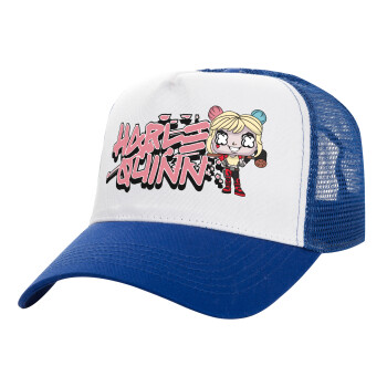 Harley Quinn (Χάρλεϊ Κουίν), Καπέλο Ενηλίκων Structured Trucker, με Δίχτυ, ΛΕΥΚΟ/ΜΠΛΕ (100% ΒΑΜΒΑΚΕΡΟ, ΕΝΗΛΙΚΩΝ, UNISEX, ONE SIZE)