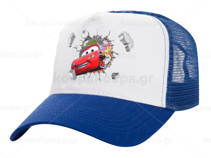 Brick McQueen, Καπέλο Ενηλίκων Structured Trucker, με Δίχτυ, ΛΕΥΚΟ/ΜΠΛΕ (100% ΒΑΜΒΑΚΕΡΟ, ΕΝΗΛΙΚΩΝ, UNISEX, ONE SIZE)