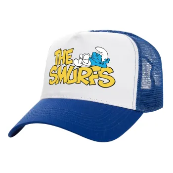 Τα στρουμφάκια, Καπέλο Ενηλίκων Structured Trucker, με Δίχτυ, ΛΕΥΚΟ/ΜΠΛΕ (100% ΒΑΜΒΑΚΕΡΟ, ΕΝΗΛΙΚΩΝ, UNISEX, ONE SIZE)