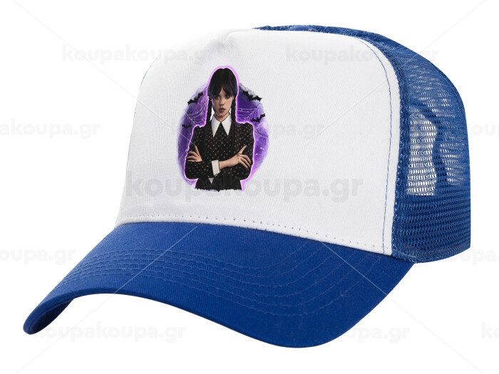 Wednesday moonlight, Καπέλο Ενηλίκων Structured Trucker, με Δίχτυ, ΛΕΥΚΟ/ΜΠΛΕ (100% ΒΑΜΒΑΚΕΡΟ, ΕΝΗΛΙΚΩΝ, UNISEX, ONE SIZE)