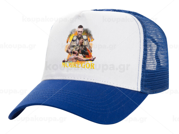 Conor McGregor Notorious, Καπέλο Ενηλίκων Structured Trucker, με Δίχτυ, ΛΕΥΚΟ/ΜΠΛΕ (100% ΒΑΜΒΑΚΕΡΟ, ΕΝΗΛΙΚΩΝ, UNISEX, ONE SIZE)