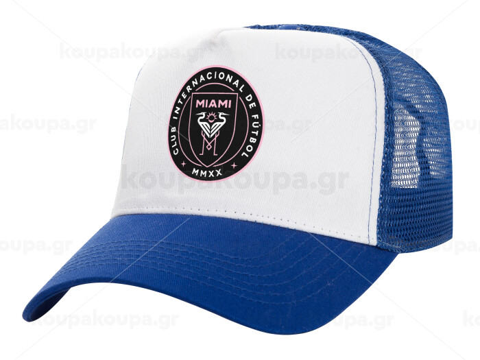 Ίντερ Μαϊάμι (Inter Miami CF), Καπέλο Ενηλίκων Structured Trucker, με Δίχτυ, ΛΕΥΚΟ/ΜΠΛΕ (100% ΒΑΜΒΑΚΕΡΟ, ΕΝΗΛΙΚΩΝ, UNISEX, ONE SIZE)
