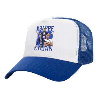 Kylian mbappe, Καπέλο Ενηλίκων Structured Trucker, με Δίχτυ, ΛΕΥΚΟ/ΜΠΛΕ (100% ΒΑΜΒΑΚΕΡΟ, ΕΝΗΛΙΚΩΝ, UNISEX, ONE SIZE)