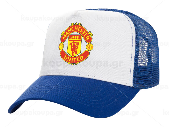 Manchester United F.C., Καπέλο Ενηλίκων Structured Trucker, με Δίχτυ, ΛΕΥΚΟ/ΜΠΛΕ (100% ΒΑΜΒΑΚΕΡΟ, ΕΝΗΛΙΚΩΝ, UNISEX, ONE SIZE)