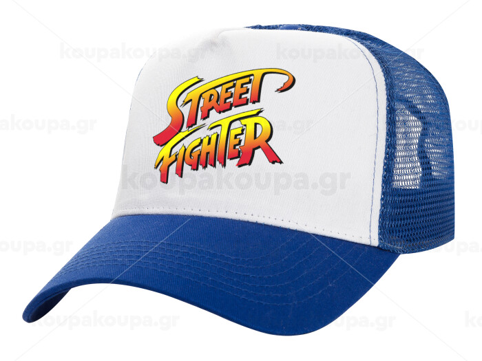 Street fighter, Καπέλο Ενηλίκων Structured Trucker, με Δίχτυ, ΛΕΥΚΟ/ΜΠΛΕ (100% ΒΑΜΒΑΚΕΡΟ, ΕΝΗΛΙΚΩΝ, UNISEX, ONE SIZE)