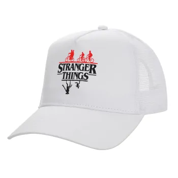 Stranger Things upside down, Καπέλο Ενηλίκων Structured Trucker, με Δίχτυ, ΛΕΥΚΟ (100% ΒΑΜΒΑΚΕΡΟ, ΕΝΗΛΙΚΩΝ, UNISEX, ONE SIZE)