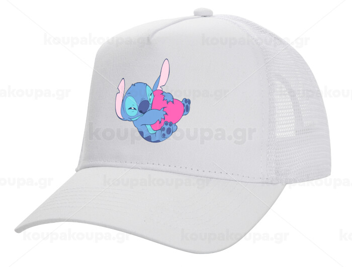 Lilo & Stitch hugs and hearts, Καπέλο Ενηλίκων Structured Trucker, με Δίχτυ, ΛΕΥΚΟ (100% ΒΑΜΒΑΚΕΡΟ, ΕΝΗΛΙΚΩΝ, UNISEX, ONE SIZE)