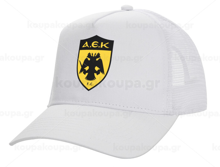 ΑΕΚ, Καπέλο Ενηλίκων Structured Trucker, με Δίχτυ, ΛΕΥΚΟ (100% ΒΑΜΒΑΚΕΡΟ, ΕΝΗΛΙΚΩΝ, UNISEX, ONE SIZE)