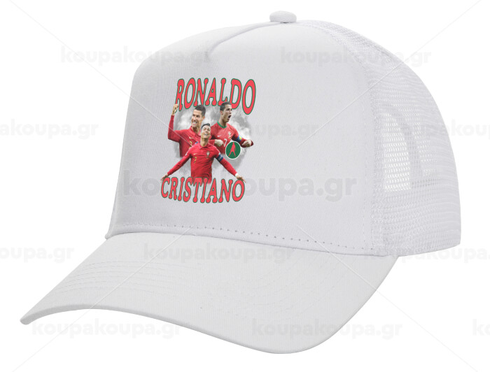 Κριστιάνο Ρονάλντο, Καπέλο Ενηλίκων Structured Trucker, με Δίχτυ, ΛΕΥΚΟ (100% ΒΑΜΒΑΚΕΡΟ, ΕΝΗΛΙΚΩΝ, UNISEX, ONE SIZE)
