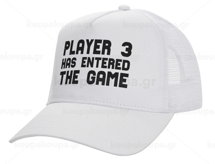 Player 3 has entered the Game, Καπέλο Ενηλίκων Structured Trucker, με Δίχτυ, ΛΕΥΚΟ (100% ΒΑΜΒΑΚΕΡΟ, ΕΝΗΛΙΚΩΝ, UNISEX, ONE SIZE)
