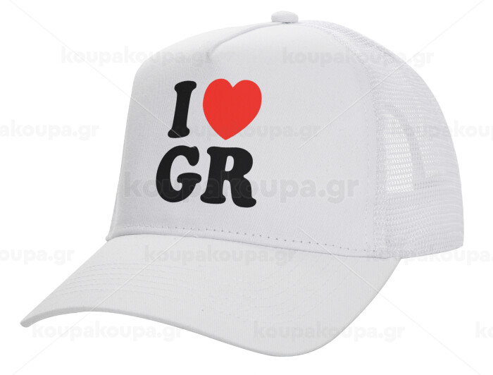 I Love GR, Καπέλο Ενηλίκων Structured Trucker, με Δίχτυ, ΛΕΥΚΟ (100% ΒΑΜΒΑΚΕΡΟ, ΕΝΗΛΙΚΩΝ, UNISEX, ONE SIZE)