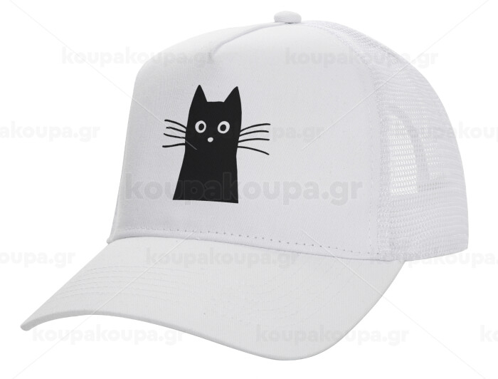 Μαύρη γάτα, Καπέλο Ενηλίκων Structured Trucker, με Δίχτυ, ΛΕΥΚΟ (100% ΒΑΜΒΑΚΕΡΟ, ΕΝΗΛΙΚΩΝ, UNISEX, ONE SIZE)