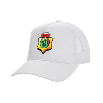 Pacman waka waka waka, Καπέλο Ενηλίκων Structured Trucker, με Δίχτυ, ΛΕΥΚΟ (100% ΒΑΜΒΑΚΕΡΟ, ΕΝΗΛΙΚΩΝ, UNISEX, ONE SIZE)