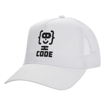 Code Heroes symbol, Καπέλο Ενηλίκων Structured Trucker, με Δίχτυ, ΛΕΥΚΟ (100% ΒΑΜΒΑΚΕΡΟ, ΕΝΗΛΙΚΩΝ, UNISEX, ONE SIZE)