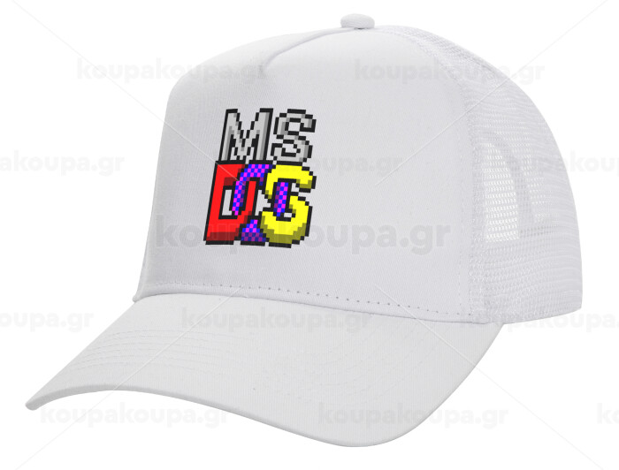 MsDos, Καπέλο Ενηλίκων Structured Trucker, με Δίχτυ, ΛΕΥΚΟ (100% ΒΑΜΒΑΚΕΡΟ, ΕΝΗΛΙΚΩΝ, UNISEX, ONE SIZE)