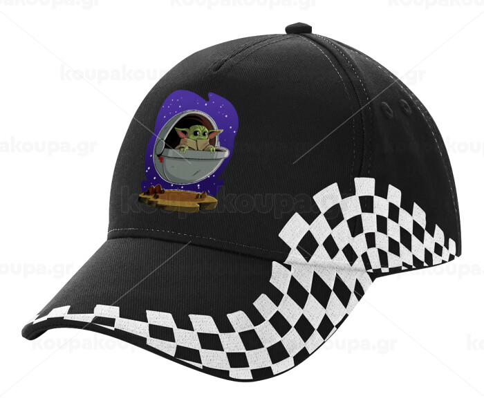 Baby Yoda mandalorian, Καπέλο Ενηλίκων Ultimate ΜΑΥΡΟ RACING, (100% ΒΑΜΒΑΚΕΡΟ DRILL, ΕΝΗΛΙΚΩΝ, UNISEX, ONE SIZE)