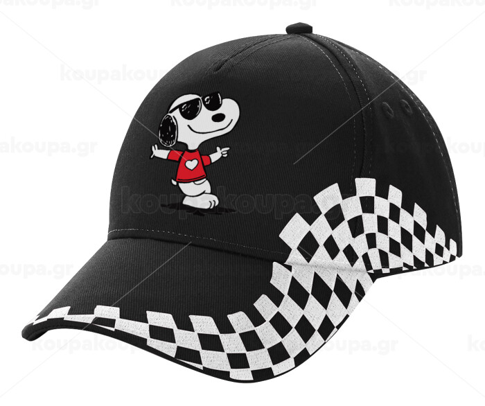 Snoopy καρδούλα, Καπέλο Ενηλίκων Ultimate ΜΑΥΡΟ RACING, (100% ΒΑΜΒΑΚΕΡΟ DRILL, ΕΝΗΛΙΚΩΝ, UNISEX, ONE SIZE)