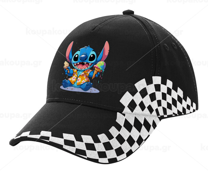 Stitch Ice cream, Καπέλο Ενηλίκων Ultimate ΜΑΥΡΟ RACING, (100% ΒΑΜΒΑΚΕΡΟ DRILL, ΕΝΗΛΙΚΩΝ, UNISEX, ONE SIZE)