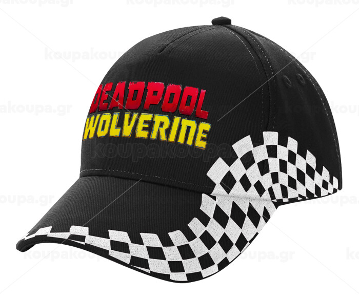 Superhero Deadpool Wolverine, Καπέλο Ενηλίκων Ultimate ΜΑΥΡΟ RACING, (100% ΒΑΜΒΑΚΕΡΟ DRILL, ΕΝΗΛΙΚΩΝ, UNISEX, ONE SIZE)