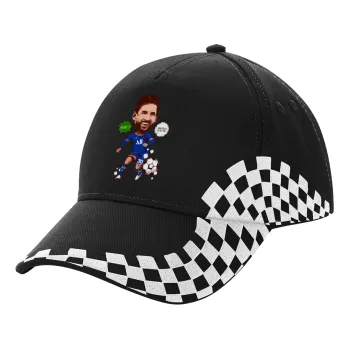 Lionel Messi drawing, Καπέλο Ενηλίκων Ultimate ΜΑΥΡΟ RACING, (100% ΒΑΜΒΑΚΕΡΟ DRILL, ΕΝΗΛΙΚΩΝ, UNISEX, ONE SIZE)