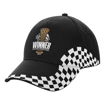 Europa Conference League WINNER, Καπέλο Ενηλίκων Ultimate ΜΑΥΡΟ RACING, (100% ΒΑΜΒΑΚΕΡΟ DRILL, ΕΝΗΛΙΚΩΝ, UNISEX, ONE SIZE)