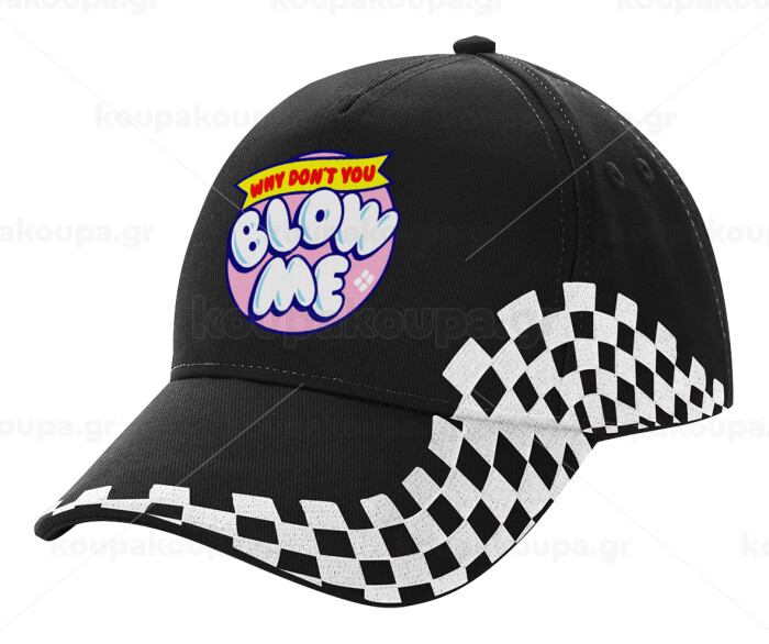 Why Don't You Blow Me Funny, Καπέλο Ενηλίκων Ultimate ΜΑΥΡΟ RACING, (100% ΒΑΜΒΑΚΕΡΟ DRILL, ΕΝΗΛΙΚΩΝ, UNISEX, ONE SIZE)