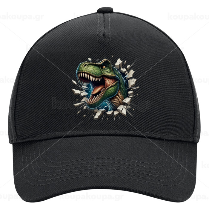 Dinosaur break wall, Καπέλο Ενηλίκων Ultimate ΜΑΥΡΟ, (100% ΒΑΜΒΑΚΕΡΟ DRILL, ΕΝΗΛΙΚΩΝ, UNISEX, ONE SIZE)
