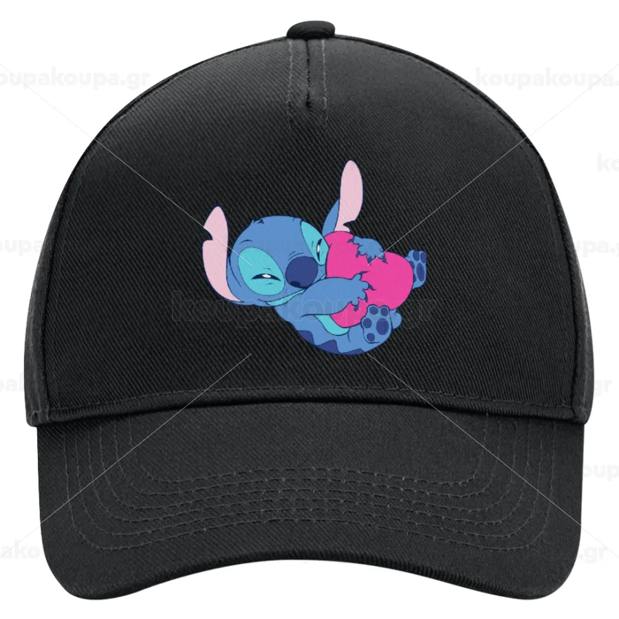 Lilo & Stitch hugs and hearts, Καπέλο Ενηλίκων Ultimate ΜΑΥΡΟ, (100% ΒΑΜΒΑΚΕΡΟ DRILL, ΕΝΗΛΙΚΩΝ, UNISEX, ONE SIZE)