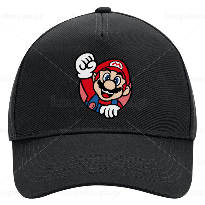 Super mario win, Καπέλο Ενηλίκων Ultimate ΜΑΥΡΟ, (100% ΒΑΜΒΑΚΕΡΟ DRILL, ΕΝΗΛΙΚΩΝ, UNISEX, ONE SIZE)