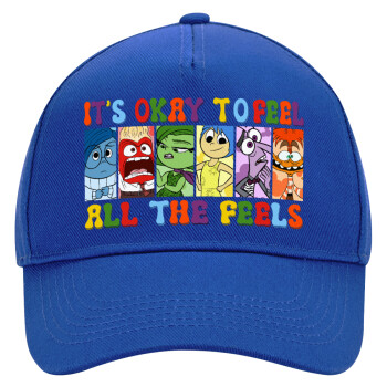 Inside Out It's Okay To Feel All The Feels , Καπέλο Ενηλίκων Ultimate ΜΠΛΕ, (100% ΒΑΜΒΑΚΕΡΟ DRILL, ΕΝΗΛΙΚΩΝ, UNISEX, ONE SIZE)