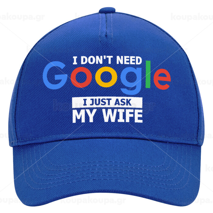 I don't need Google, just ask my WIFE, Καπέλο Ενηλίκων Ultimate ΜΠΛΕ, (100% ΒΑΜΒΑΚΕΡΟ DRILL, ΕΝΗΛΙΚΩΝ, UNISEX, ONE SIZE)