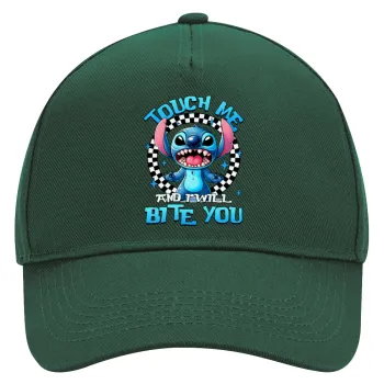 Stitch Touch Me And I Will Bite You, Καπέλο Ενηλίκων Ultimate ΠΡΑΣΙΝΟ, (100% ΒΑΜΒΑΚΕΡΟ DRILL, ΕΝΗΛΙΚΩΝ, UNISEX, ONE SIZE)