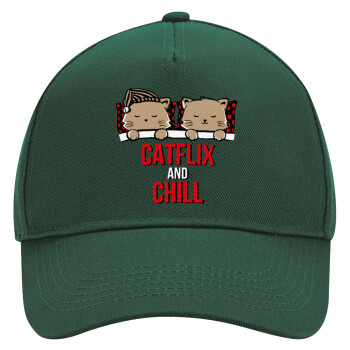 Catflix and Chill, Καπέλο Ενηλίκων Ultimate ΠΡΑΣΙΝΟ, (100% ΒΑΜΒΑΚΕΡΟ DRILL, ΕΝΗΛΙΚΩΝ, UNISEX, ONE SIZE)