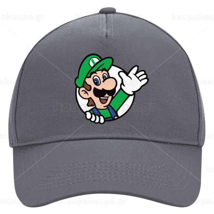 Super mario Luigi win, Καπέλο Ενηλίκων Ultimate Γκρι, (100% ΒΑΜΒΑΚΕΡΟ DRILL, ΕΝΗΛΙΚΩΝ, UNISEX, ONE SIZE)