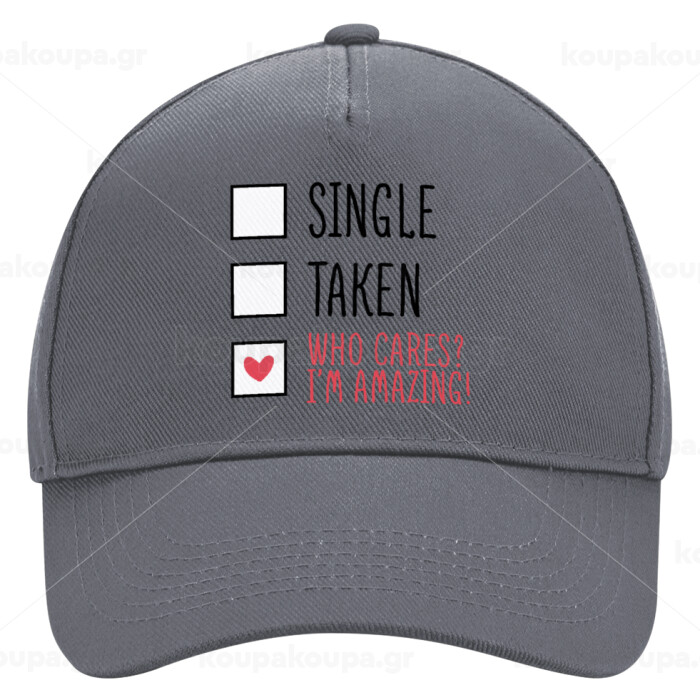 Single, Taken, Who cares i'm amazing, Καπέλο Ενηλίκων Ultimate Γκρι, (100% ΒΑΜΒΑΚΕΡΟ DRILL, ΕΝΗΛΙΚΩΝ, UNISEX, ONE SIZE)
