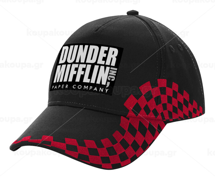 Dunder Mifflin, Inc Paper Company, Καπέλο Ενηλίκων Ultimate ΜΑΥΡΟ/ΚΟΚΚΙΝΟ RACING, (100% ΒΑΜΒΑΚΕΡΟ DRILL, ΕΝΗΛΙΚΩΝ, UNISEX, ONE SIZE)