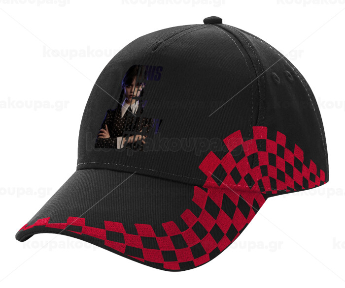 Wednesday, This is my happy face, Καπέλο Ενηλίκων Ultimate ΜΑΥΡΟ/ΚΟΚΚΙΝΟ RACING, (100% ΒΑΜΒΑΚΕΡΟ DRILL, ΕΝΗΛΙΚΩΝ, UNISEX, ONE SIZE)