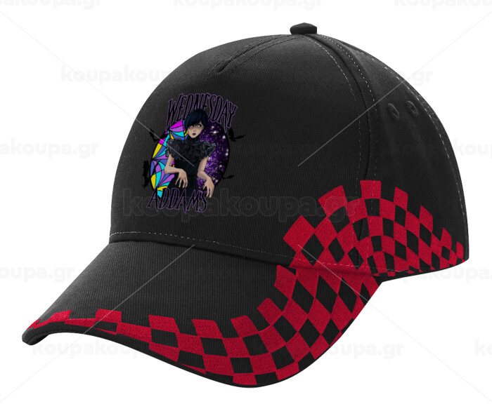 Wednesday Jenna Ortega, Καπέλο Ενηλίκων Ultimate ΜΑΥΡΟ/ΚΟΚΚΙΝΟ RACING, (100% ΒΑΜΒΑΚΕΡΟ DRILL, ΕΝΗΛΙΚΩΝ, UNISEX, ONE SIZE)