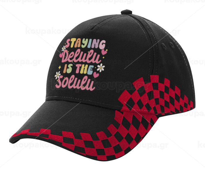 Delulu, Καπέλο Ενηλίκων Ultimate ΜΑΥΡΟ/ΚΟΚΚΙΝΟ RACING, (100% ΒΑΜΒΑΚΕΡΟ DRILL, ΕΝΗΛΙΚΩΝ, UNISEX, ONE SIZE)