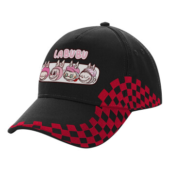 Labubu pink, Καπέλο Ενηλίκων Ultimate ΜΑΥΡΟ/ΚΟΚΚΙΝΟ RACING, (100% ΒΑΜΒΑΚΕΡΟ DRILL, ΕΝΗΛΙΚΩΝ, UNISEX, ONE SIZE)