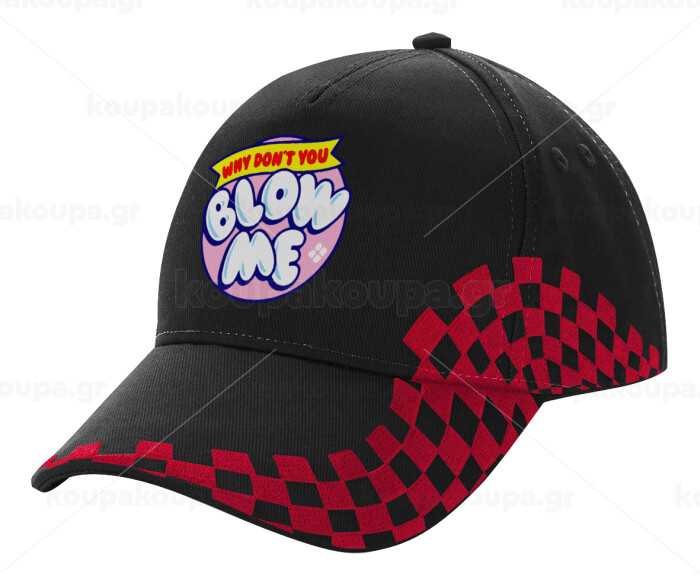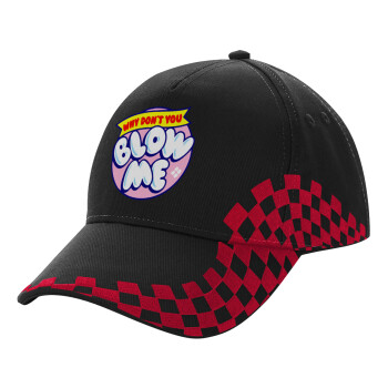Why Don't You Blow Me Funny, Καπέλο Ενηλίκων Ultimate ΜΑΥΡΟ/ΚΟΚΚΙΝΟ RACING, (100% ΒΑΜΒΑΚΕΡΟ DRILL, ΕΝΗΛΙΚΩΝ, UNISEX, ONE SIZE)