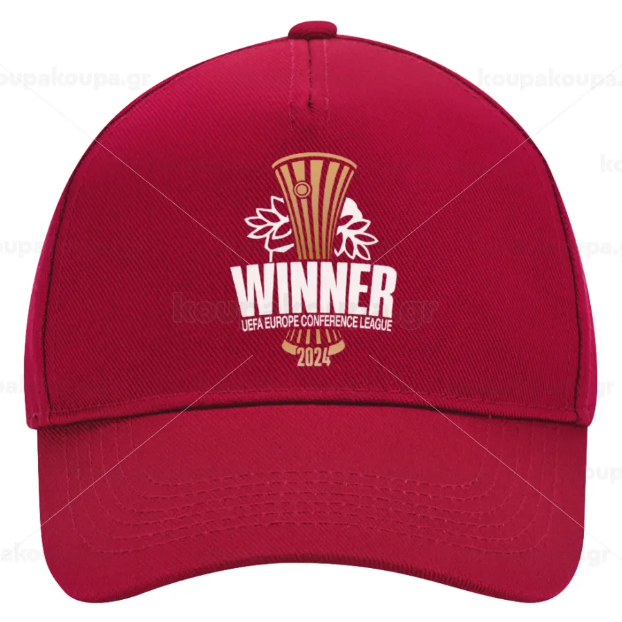 Europa Conference League WINNER, Καπέλο Ενηλίκων Ultimate ΚΟΚΚΙΝΟ, (100% ΒΑΜΒΑΚΕΡΟ DRILL, ΕΝΗΛΙΚΩΝ, UNISEX, ONE SIZE)