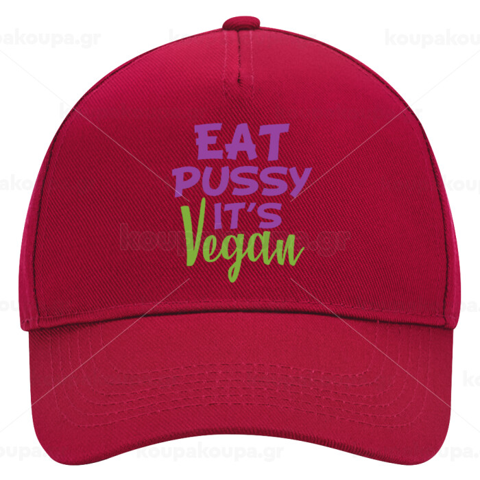 EAT pussy it's vegan, Καπέλο Ενηλίκων Ultimate ΚΟΚΚΙΝΟ, (100% ΒΑΜΒΑΚΕΡΟ DRILL, ΕΝΗΛΙΚΩΝ, UNISEX, ONE SIZE)