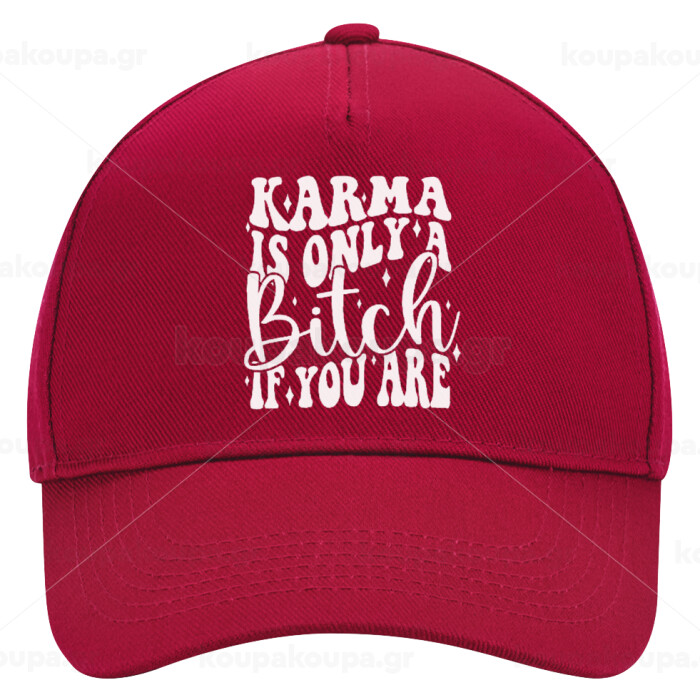 Karma is Only A Bitch if You Are, Καπέλο Ενηλίκων Ultimate ΚΟΚΚΙΝΟ, (100% ΒΑΜΒΑΚΕΡΟ DRILL, ΕΝΗΛΙΚΩΝ, UNISEX, ONE SIZE)